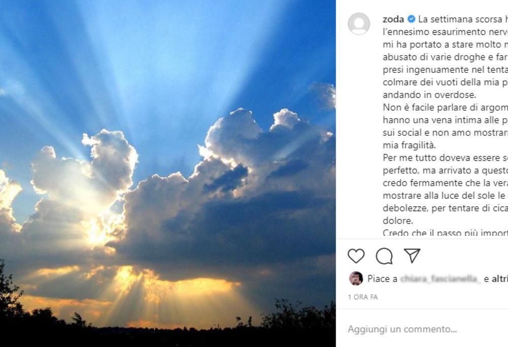 Daniele Sodano in arte Zoda, lo youtuber (da quasi 28 milioni di visualizzazioni) diventato famoso nel settore gaming e poi passato al rap, ha appena pubblicato sul suo profilo Instagram un accorato appello che suona come un inno alla vita.