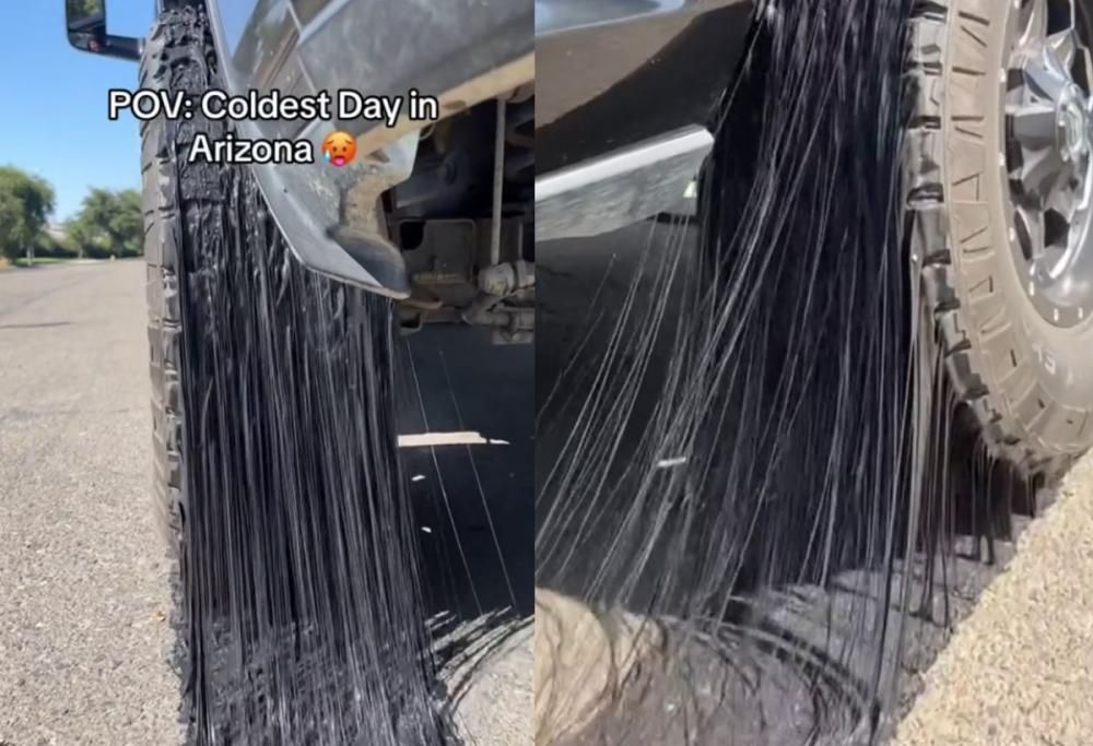 @newsandviralcontent Arizona Heat Melting Stuff #arisona #heatwave #melting #tires #truck #trucks #trucksoftiktok #viral #fyp #summe #summervibes #summer2023 #fyp ♬ I Got 5 On It – Tethered Mix from US – Michael Abels & Luniz