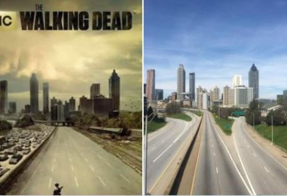 È proprio quello che ha evidenziato un utente di Twitter (The Mad Engineer) che ha pensato di comparare il famoso poster della serie con la desolazione delle strade di Atlanta in pieno lockdown per l’adozione di misure di contrasto alla diffusione del contagio da coronavirus.
