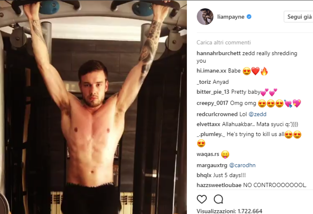 Tra i commenti, quello di ironico di Zedd: «Fratello, ma li fai i pesi?». Zedd e Liam si stanno frequentando molto in questi giorni: non solo la collaborazione al singolo Get Low, ma anche un’improvvisata per le vie di Londra, dove Liam Payne e Zedd si sono finti busker, musicisti da strada, per la gioia dei fan. E presto uscirà il suo debutto da solista. Insomma, Liam si tiene impegnato, anche se, come ha di recente confessato, sogna una reunion degli One Direction.