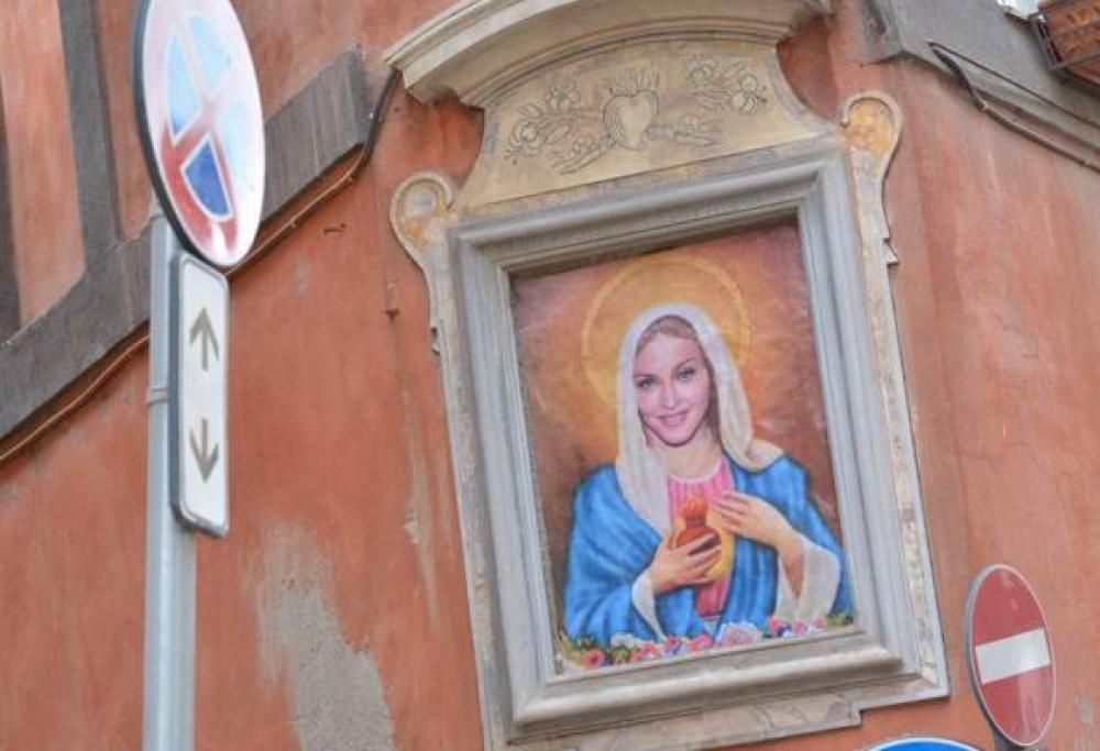 Madonna, la sua immagine in un’edicola sacra. Una provocazione o farse solo una trovata di pessimo gusto. L’immagine della cantante statunitense ha fatto la sua comparsa ieri in un’edicola sacra in via di Panico a Roma. L’immagine originale del 1867 ritraeva la vera Madonna con Bambino e San Filippo Neri e fu rimossa per il Giubileo del 2000 e poi mai più ricollocata. Ieri però gli abitanti del quartiere si sono ritrovati con un’immagine completamente diversa. Nello spazio dove era collocata la Madonna è spuntata un’immagine di Madonna Louise Veronica Ciccone; un lavoro complesso che avrà necessitato di tempo e di progettazione ma che alla fine ha colto nel segno.
