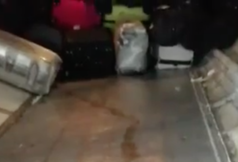 Al Terminal 1 del liquido rosso ha sporcato lo scarico dei bagagli: tutta colpa di carne fresca trasportata in una borsa.
