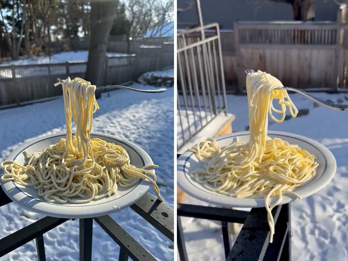 Gelo record negli USA: l'esperimento virale a -29 gradi trasforma un piatto di pasta in una scultura sospesa nel vuoto. Il video