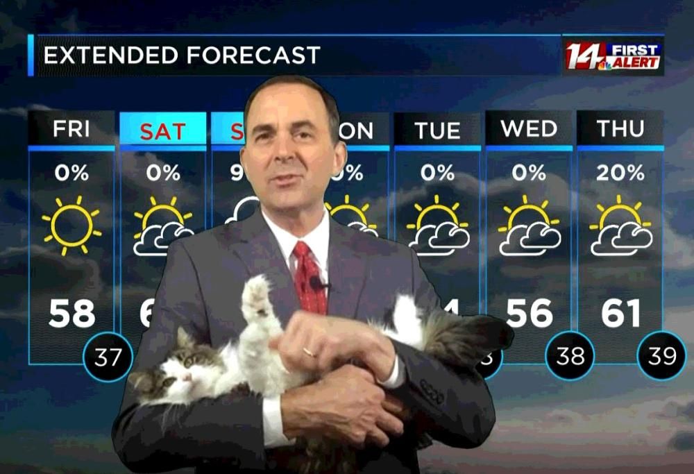 Meteorologo fa le previsioni da casa ma la sua gatta gli ruba la scena