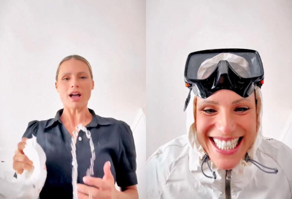 Rieccola dunque tornare alla carica, questa volta con anche una maschera subacquea per proteggere gli occhi. Ora non sembrano esserci possibilità per il nipote di bagnarla. Tuttavia sembra che Cesare non riconosca la nonna con il viso mascherato e scoppia a piangere. Quando lei decide di toglierla per farlo smettere e fargli capire di essere la nonna, arriva immancabile lo scherzetto del nipote che la colpisce nuovamente in faccia. Pronta la replica di Aurora che, condividendo il video della mamma, ha voluto precisare: “Cesare nega tutto!”.