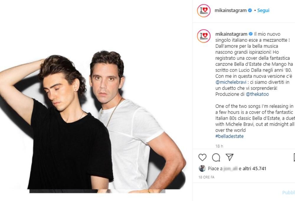Un duo inedito per riportare in auge una delle canzoni più rappresentative degli anni ’80. Mika e Michele Bravi uniscono le loro voci per realizzare la cover di “Bella d’estate”, singolo pubblicato da Mango nell’estate del 1987.