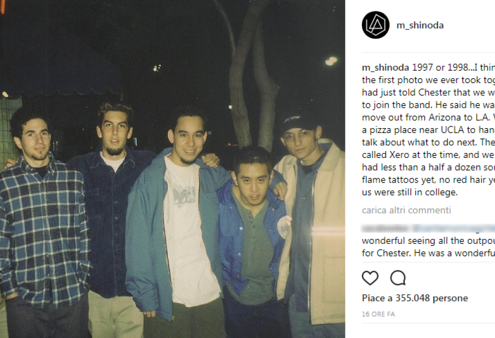 Mike Shinoda ancora non riesce a farsi una ragione della morte del suo amico e compagno nei Linkin Park Chester Bennington. Mike ha condiviso una foto, una delle prime della band dopo l’arrivo di Chester. Sono tutti giovanissimi, è una foto di una ventina di anni fa. “Era il 1997 o 1998“, ha scritto Shinoda, “Penso che sia stata la nostra prima foto insieme. Avevamo appena detto a Chester che volevamo si unisse a noi, lui si stava per trasferire dall’Arizona a Los Angeles“.
