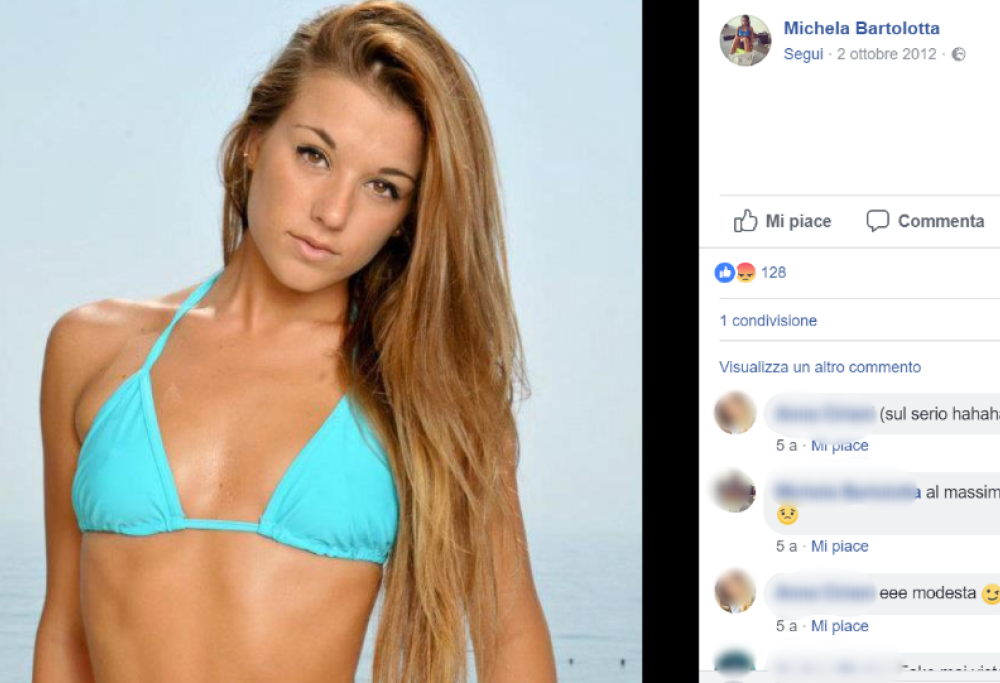 Per la giovane commessa con aspirazioni da modella (è stata finalista a Miss Muretto 2012 e prima al Bikini Contest 2015 a Rimini) è arrivata ora la sentenza emessa dal Tribunale di Padova. Secondo quanto riportato dal corriere.it, Michela Bartolotta è stata condannata a quattro mesi di reclusione con la sospensione condizionale e la non menzione. L’accusa? La giovane ha violato la legge Mancino e ha diffuso “idee fondate sulla superiorità e sull’odio razziale o etnico”.