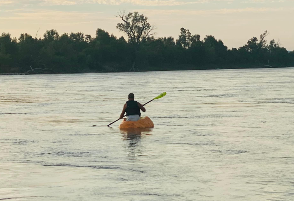 Naviga 11 ore sul Missouri dentro una zucca: record per Duane Hansen