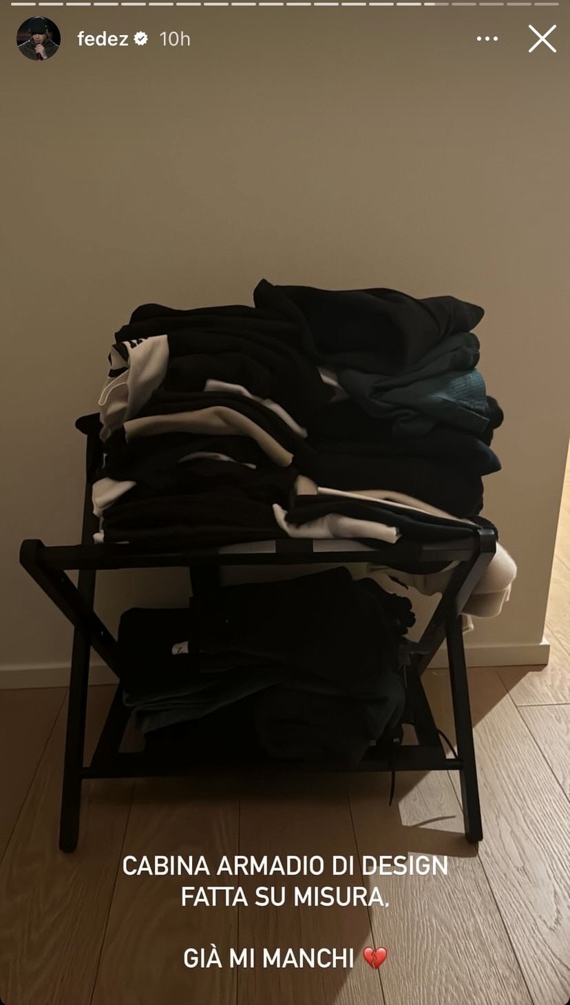 Nelle sue storie sui social media, Fedez ha anche scherzato sulla differenza tra la sua attuale cabina armadio e quella che aveva precedentemente nel super attico con sua moglie Chiara Ferragni. Con un pizzico di sarcasmo, ha mostrato uno sgabello pieghevole con sopra alcuni vestiti ammassati, definendolo sarcasticamente una “cabina armadio di design fatta su misura”. Insomma, niente a che vedere con quello che condivideva con l’imprenditrice digitale.