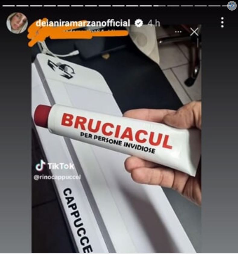 Nelle ultime ore il padre del ballerino ha pubblicato un video sul suo profilo TikTok in cui si vede il tubetto di una pomata con su una scritta che non lascia spazio a fraintendimenti: "Bruciacul- per persone invidiose, dedicata a tutti i rosiconi e li rende più collaborativi". Il video è stato segnalato all’esperta di gossip Deianira Marzano che non ci ha messo molto a far girare la notizia sui suoi social. Secondo alcuni il video rappresenterebbe una frecciatina nei confronti della sua ex nuora. Si tratterebbe di una presa di posizione importante da parte del signor Enrico, considerando la scelta del figlio di non esporsi in questo momento.