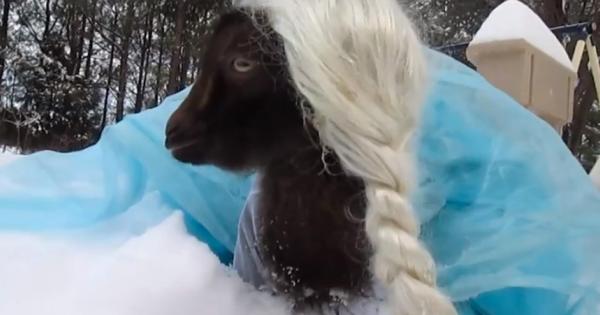 Ecco la spiegazione: l’utente YouTube Lil’Crittenz, specializzato in video di animali, ha trasformato una capretta intenta a rilassarsi tra la neve in una vera star. Orgogliosa della sua lunga e bionda treccia, con un mantello da fare invidia alla principessa originale, la capra sembra essere perfettamente a suo agio nei panni dell’eroina del film Disney.