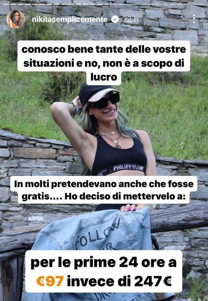 In un post del 22 settembre scorso, l’influencer scrive: “Riceverete sconti speciali del 10% su tutti i prodotti del mio shop per motivarvi con le stesse metodologie che mi hanno aiutata a uscire dalla depressione, insoddisfazione, apatia, attacchi di ansia, smarrimento“. In questo modo, Nikita stessa crea un collegamento tra patologie come ansia e depressione e l’esperienza che promette di mettere al servizio di chi acquista il suo corso video.
