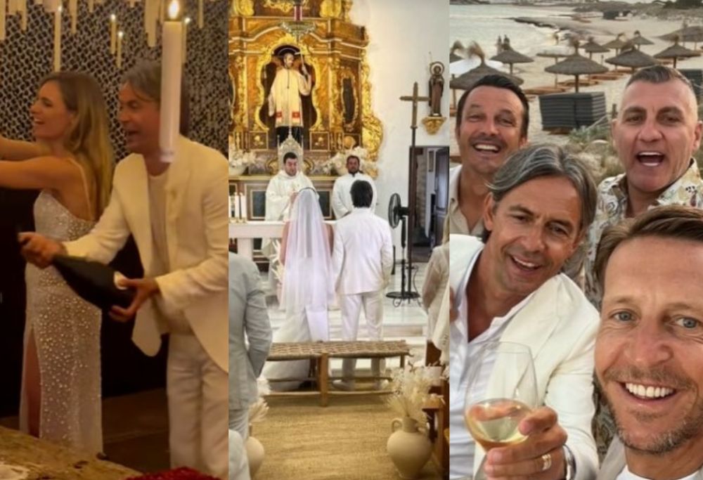 L’allenatore ed ex calciatore Pippo Inzaghi ha sposato la wedding planner padovana Angela Robusti in una cerimonia da sogno in riva al mare a Formentera. Insieme da sette anni e genitori di Edoardo, di 3 anni, ed Emilia, di 1 anno, la coppia ha coronato il loro amore con un matrimonio indimenticabile, celebrato nel tardo pomeriggio. La sposa, 34 anni, e lo sposo, 51 anni, hanno scelto l’isola spagnola come sfondo perfetto per il loro giorno più bello.