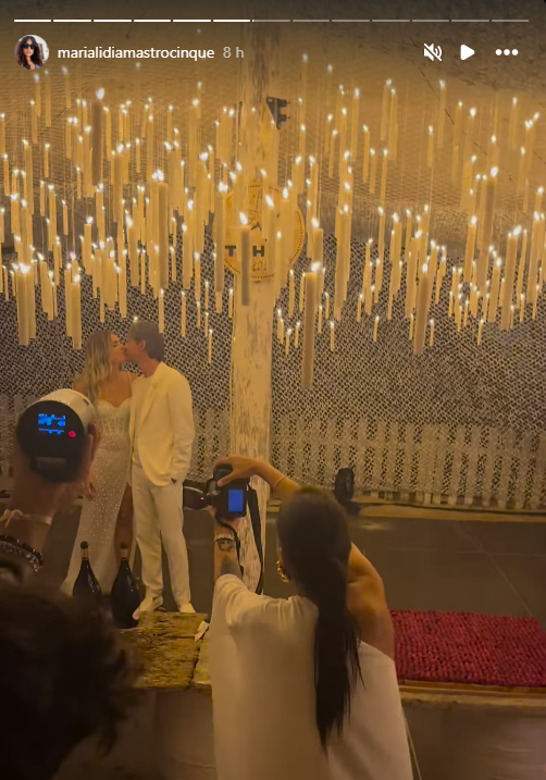 La cerimonia, svoltasi sulla spiaggia al tramonto, è stata caratterizzata da un’atmosfera magica. Pippo e Angela, entrambi vestiti di bianco, hanno scambiato i voti in un contesto suggestivo, con il mare come sfondo e il cielo dipinto dai colori del tramonto. Dopo la cerimonia, Angela ha cambiato abito, optando per un elegante vestitino argentato per la festa serale. La serata è stata all’insegna dell’allegria e della convivialità, cominciata con un aperitivo sulla spiaggia, tra spumante e patatine, e proseguita fino a notte inoltrata.