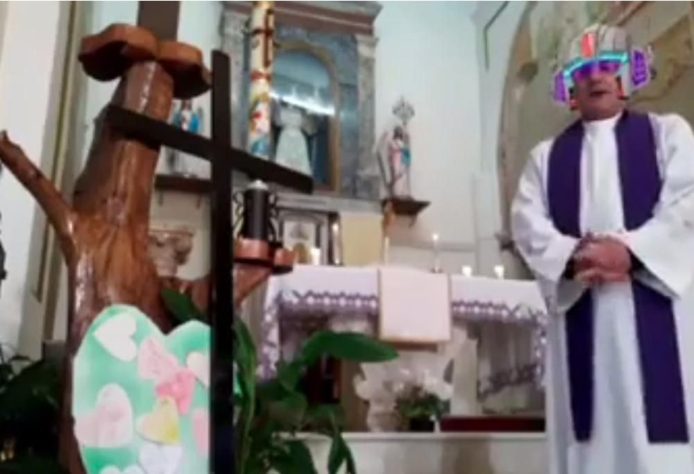 Prete attiva per sbaglio i filtri nella diretta durante la messa online: il divertente video