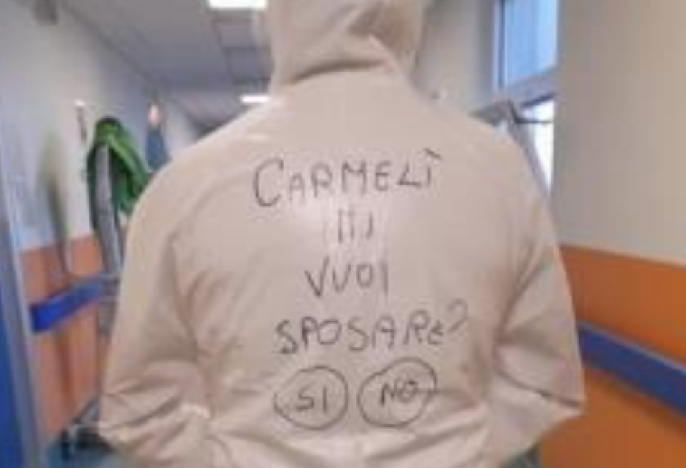Risultato fra i primi positivi al Covid e tra i primi a essere vaccinato, ha combattuto e continua a lottare in prima linea contro il virus. Proprio per questo ha deciso di convolare a nozze con la sua fidanzata, riservandole una proposta di matrimonio davvero speciale. Sulla sua tuta anti-Covid, che indossa ogni giorno per lavoro, Giuseppe ha scritto: “Carmelì, mi vuoi sposare? Sì, no”. Ha poi postato la foto sul suo profilo Facebook, taggando la fidanzata che, senza alcuna esitazione, ha risposto con un sì davvero deciso.