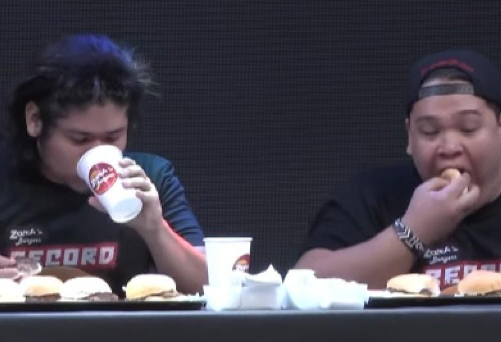 Questi due ragazzi riescono a ingurgitare hamburger ad una velocità incredibile. Riuscireste a fare di meglio?