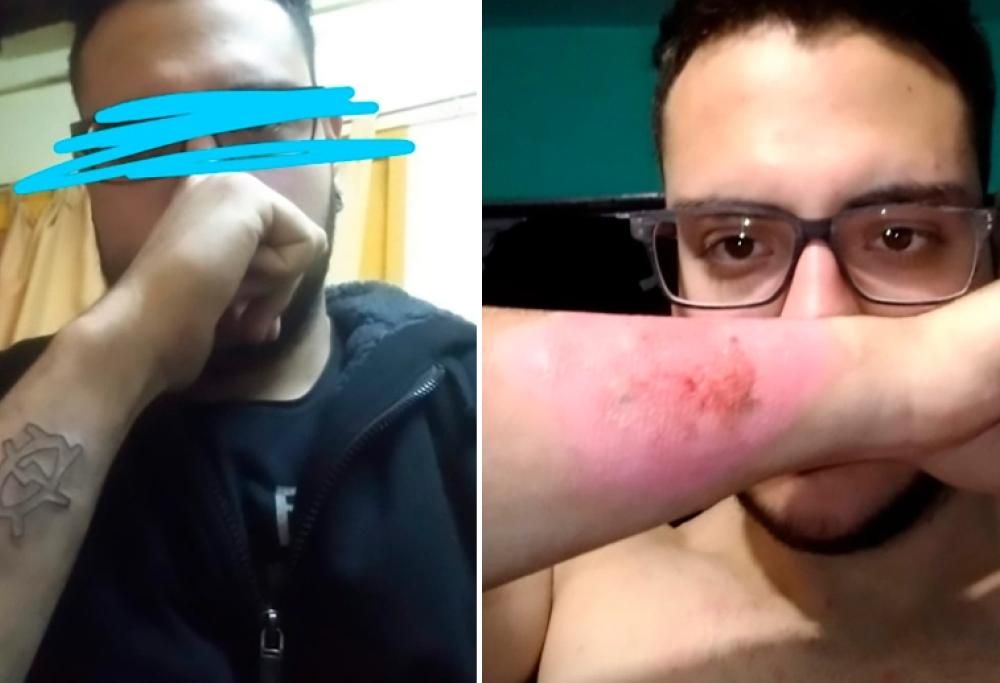 Il 21enne ha pensato di rimuovere da solo il tattoo che non gli piaceva più.