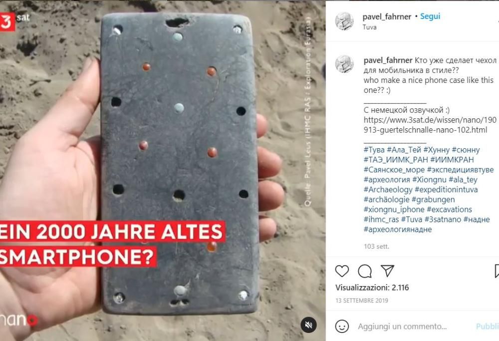 La faccia che hanno fatto gli archeologi mentre scavavano in Siberia deve essere stata sicuramente di grande stupore quando hanno trovato quella sembrava essere proprio la custodia di un iPhone o comunque di un telefono di ultima generazione. Il ritrovamento è stato fatto all’interno di una tomba di 2100 anni fa, che conteneva i resti di una ragazza soprannominata “Natasha”. La tomba si trova sotto un vasto bacino artificiale siberiano, il Mare di Sayan, prosciugato per un breve periodo durante l’estate; un luogo suggestivo, una sorta di “Atlantide”, in cui giacevano i resti e i suoi averi, tra cui il suo “smartphone” che i ricercatori hanno soprannominato “l’iPhone di 2100 anni”. La ragazza probabilmente visse durante il periodo Xiongnu in quelle zone remote dell’Asia e, per i suoi tempi doveva essere una tipa “alla moda”, a dimostrarlo è il corredo sepolto con lei, tra cui l’oggetto simil-iphone che si pensa possa essere la fibbia di una cintura preziosa; è arricchito da molte pietre preziose tra cui turchese, corniola e madreperla, che lo rendevano già allora un oggetto di valore. Gli studiosi hanno fatto ipotesi anche su chi potesse essere questa Natasha, c’è chi sostiene che fosse una sacerdotessa e chi una tessitrice (visto il gusto in fatto di moda). “La sepoltura di Natasha con l’iPhone – ha dichiarato l’archeologo Pavel Leus – rimane una delle più interessanti in questo luogo“. In effetti non capita tutti i giorni di trovare un iPhone così datato.