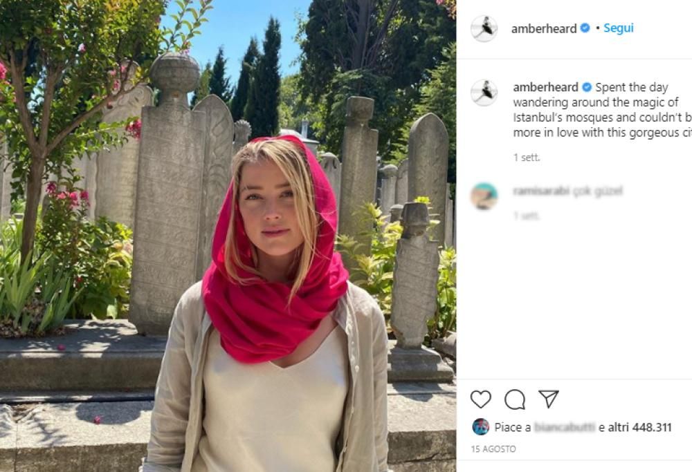 Nella didascalia della foto incriminata, l’ex moglie di Johnny Depp scrive: “Ho trascorso la giornata esplorando la magia delle moschee di Istanbul e non potrei essere più innamorata di questa splendida città“.
