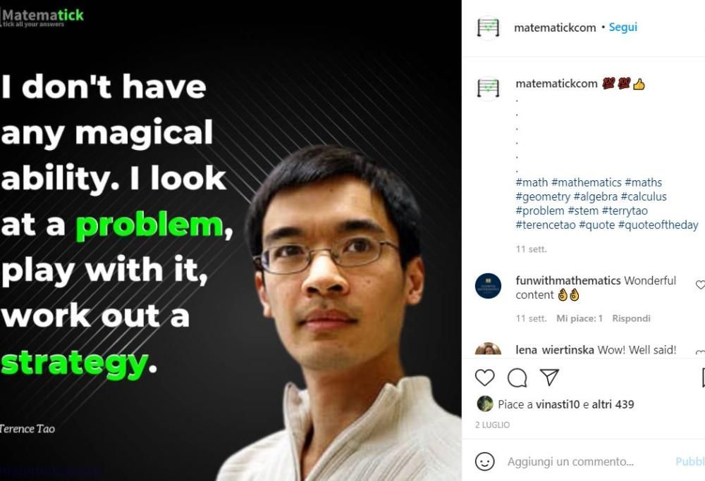 Terence ha 46 anni, una moglie, due figli, è professore presso l’Università della California ed è appassionato di videogiochi, anche se ha dovuto metterli da parte negli anni. Normale, sì, ma non come gli altri: a 2 anni leggeva da solo, a 5 insegnava ai bambini, a 7 era al liceo, a 9 frequentava corsi di matematica avanzata. Eppure ha raccontato al Corriere di avere avuto anche qualche problema a scuola: «Ho fallito un paio di esami. Uno era di fisica: tutto bene per la parte di matematica, poi mi hanno chiesto nozioni storiche e io non le avevo studiate perché secondo me non c’entravano nulla». A sentirlo parlare ci si appassiona quasi della matematica, che lui descrive così: «La matematica è il linguaggio con cui spogli un pensiero nelle componenti centrali. Un’eventuale razza extraterrestre non comunicherebbe a parole, ma con numeri e matrici». Conviene darsi da fare, anche chi non ama i numeri a quanto pare deve iniziare a familiarizzare con la matematica per avere una chance con chi abita l’universo là fuori!