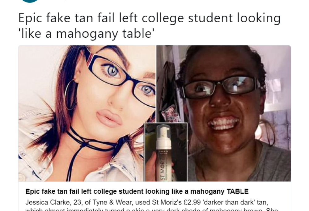 Epic fake tan fail left college student looking ‘like a mahogany table’ https://t.co/wj5A451Hcm