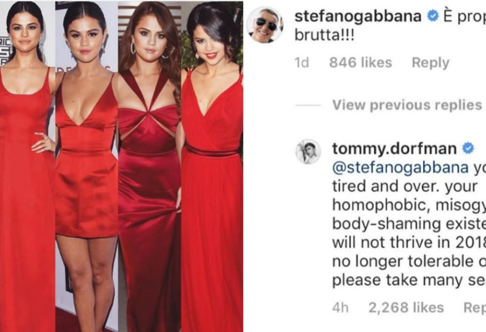 Nessuno tocca Selena Gomez sui social network senza pagare le conseguenze. La tempesta sta colpendo Stefano Gabbana, che su Instagram ha scritto: “È proprio brutta“, commentando la foto di un account di moda (TheCatwalkItalia) che aveva pubblicato una foto della popstar americana vestita di rosso in cinque diverse occasioni della sua vita, da quando era giovanissima a oggi. Sicuramente, in questa occasione, Gabbana non ha fatto sfoggio di diplomazia.