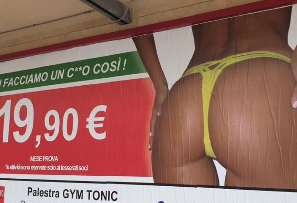 “Ti facciamo un c***o così”: è polemica sul manifesto pubblicitario di una palestra