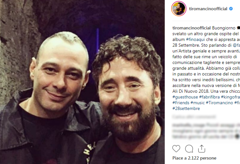Ci sarà anche Fabri Fibra nel nuovo album dei Tiromancino. Il duetto è stato annunciato sui profili social della band romana: “Vi svelo un altro grande ospite di Fino a qui, Fabri Fibra! Un’artista geniale e sempre avanti! Abbiamo già collaborato in passato ma in occasione del nuovo album ha scritto versi inediti bellissimi che potrete ascoltare sulla nuova versione di Muovo le ali di nuovo“, canzone inserita nel loro album La descrizione di un attimo. I due avevano collaborato ad Incomprensioni, primo singolo estratto dall’album Chi vuole essere Fabri Fibra?. Ve la ricordate?