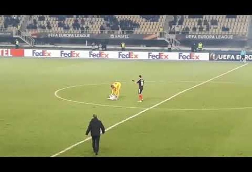 Avrà pensato la stessa cosa il portiere del Vardar, Filip Gacevski, trovatosi protagonista di un’insolita invasione di campo.
