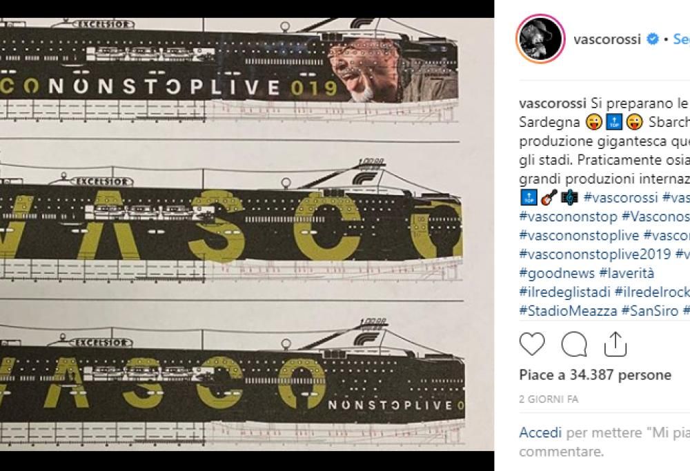 Con dei post su Instagram e Facebook, pubblicati nelle scorse ore, Vasco Rossi annuncia ufficialmente i preparativi per portare la super produzione del suo tour a Cagliari, salpando da Genova.