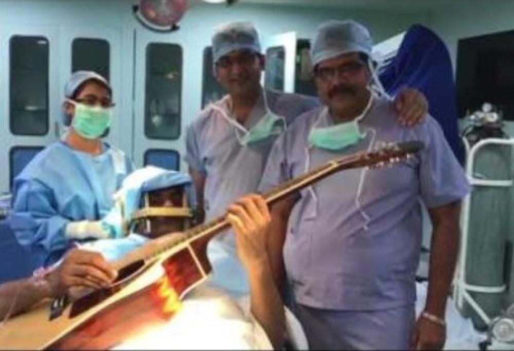 Un artista indiano affetto da distonia ha continuato a suonare durante l'intervento per aiutare il chirurgo ad individuare l'area del cervello da operare.