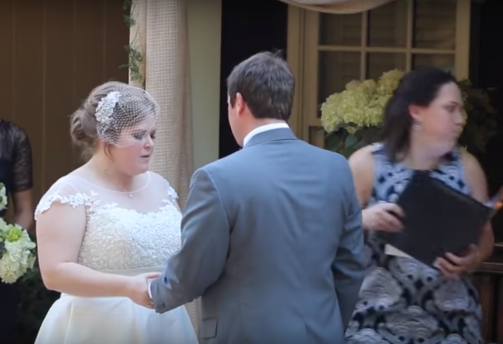 Probabilmente la sposa non ricorderà questo come il suo giorno più bello: mentre si scambiano le fedi, la celebratrice vomita di fianco agli sposi.