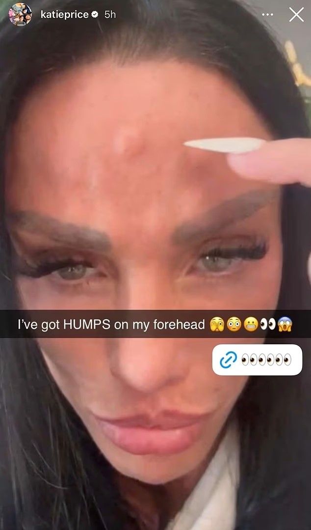 C’è chi dopo il botox si ritrova la pelle più liscia… e chi, come Katie Price, si ritrova con delle “gobbe” in fronte. La showgirl britannica ha fatto esplodere i social con un selfie post-trattamento che non lascia spazio ai dubbi (né ai filtri): fronte gonfia, piccoli rigonfiamenti e un commento che è già virale. “Ho delle gobbe sulla fronte”, ha scritto su Snapchat, mostrando le protuberanze che si estendono dalle sopracciglia al centro del viso.