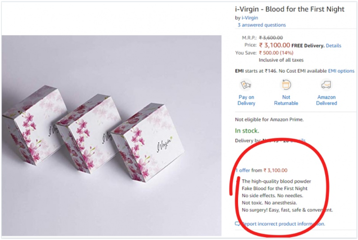 L’usanza di controllare le lenzuola dopo la prima notte di nozze, ahimè persiste ancora in alcune regioni dell’India, Paese che ha già provveduto ad accusare il sito e-commerce che commercializza la pillola, di minare (in)discutibili usanze secolari.