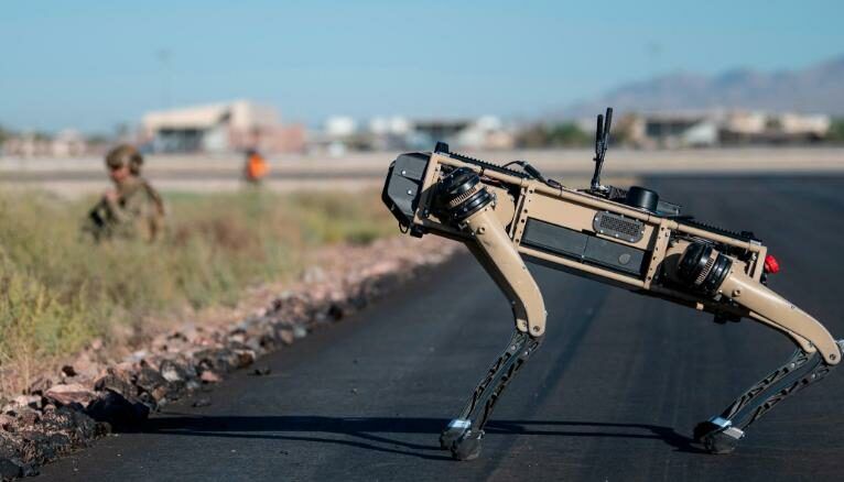 L’aviazione americana ha recentemente utilizzato cani robotici per difendere i perimetri della base aeronautica di Nellis mentre veniva condotto un test sul campo.