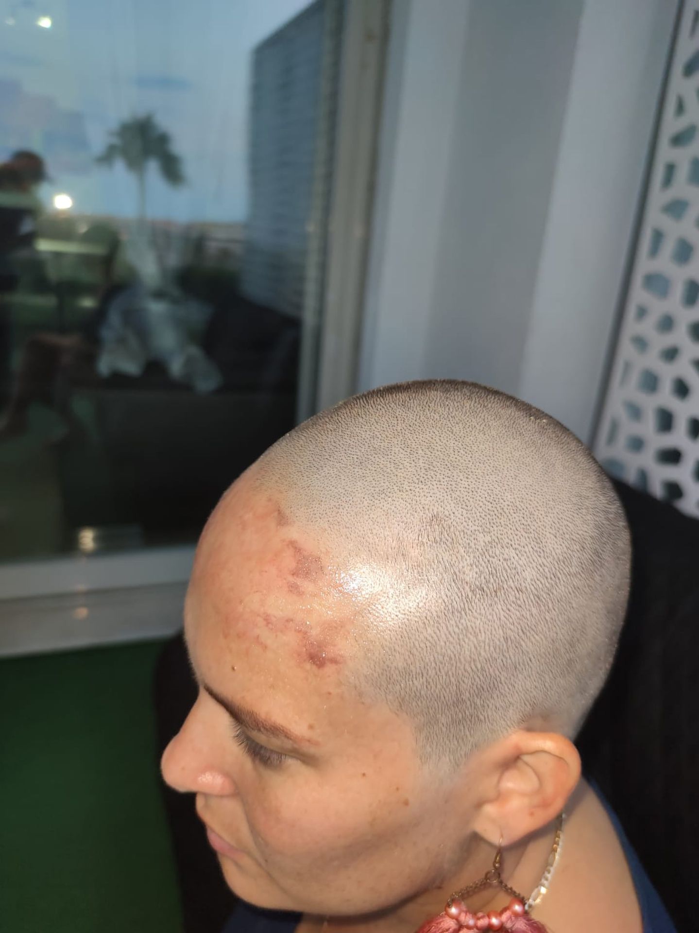 La 31enne è andata in ospedale, dove i medici non avevano altra scelta che radersi la testa per rimuovere la colla e curare le ustioni.