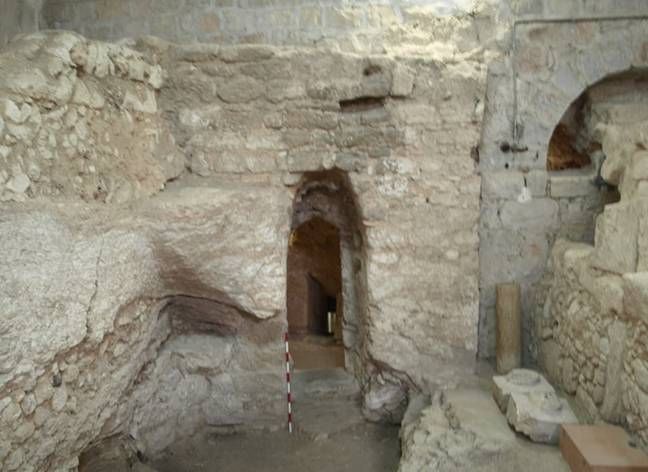 Il sito si trova sotto una chiesa di epoca bizantina e che a sua volta si trova sotto il Convento delle suore di Nazareth.