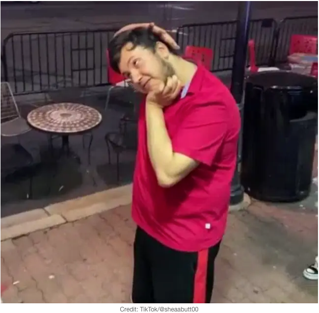 Avete presente il film L’esorcista, dove Linda Blair gira la testa mentre è posseduta? Ecco, qui accade la stessa cosa, con la differenza che questo signore (@sheaabutt00) non è posseduto e la testa la ruota per davvero.