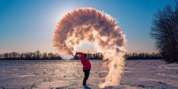 Malgrado i diversi danni che il gelo sta procurando ai cittadini, è già nata sui social una nuova tendenza virale: quella di gettare acqua bollente in aria e guardarla congelarsi all’istante.