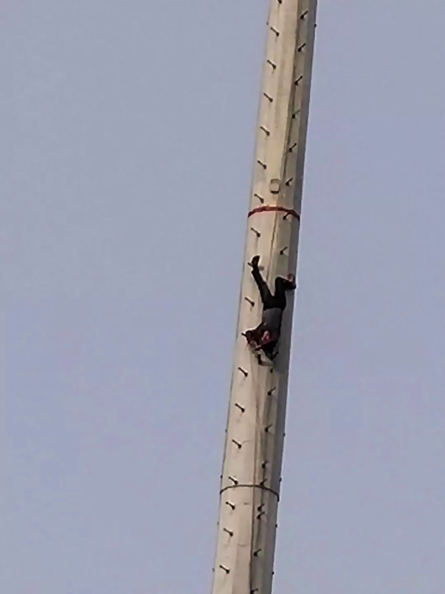 Uomo ubriaco si risveglia a testa in giù appeso a un palo del telefono!